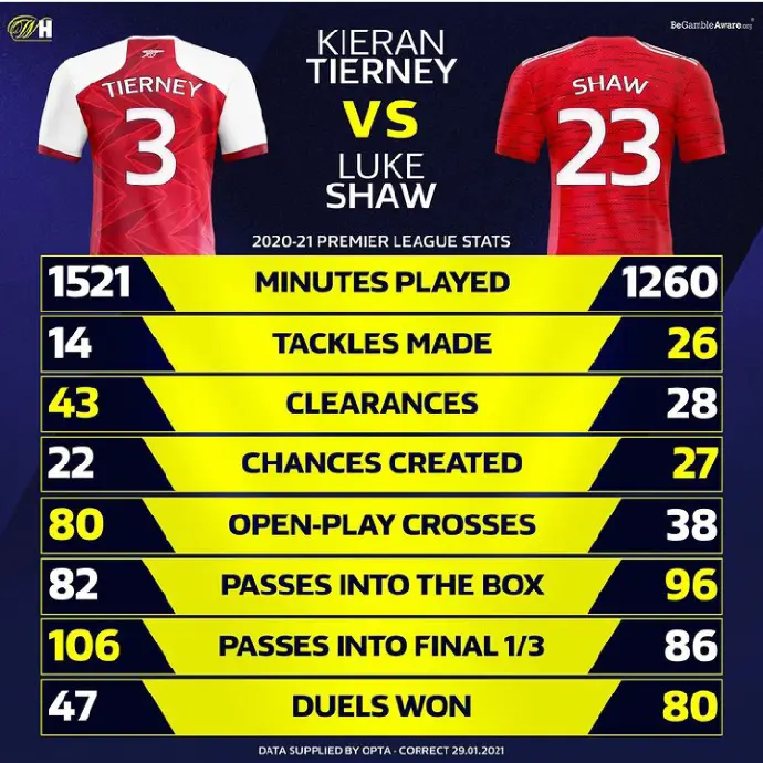 Kieran Tierney And Luke Shaw Premier League Stats Who S Better Reutersng Com